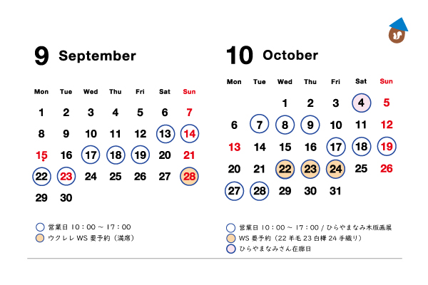 ※10月22日(水)~25日(金)は、ワークショップに参加される方のみの来店日となります。