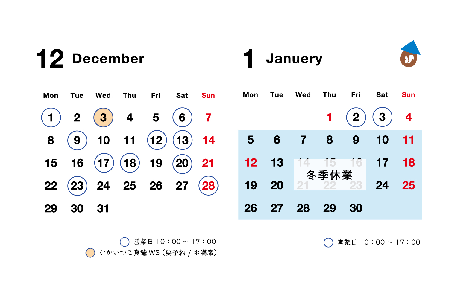 〇がついている日に営業しています。